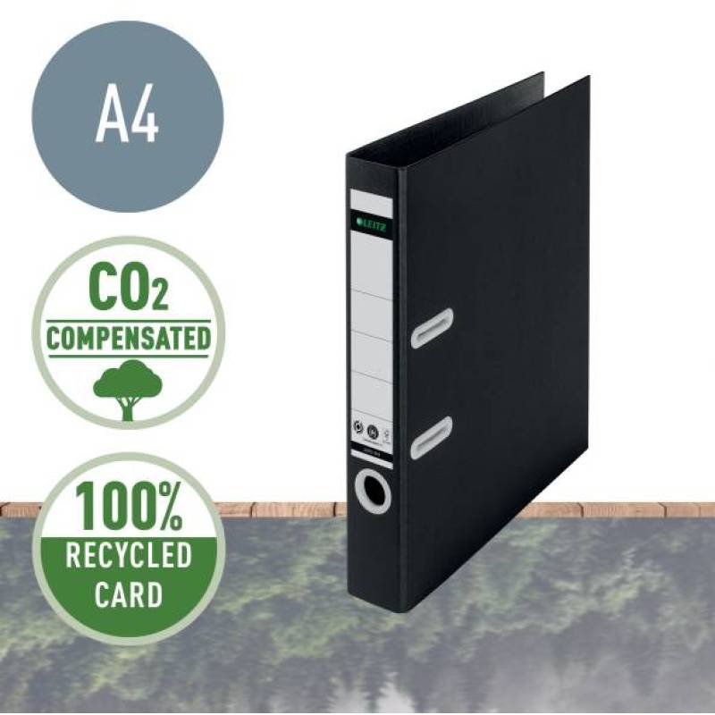 Najwyższej jakości atrakcyjny segregator z dźwignią, wykonany z materiałów pochodzących z recyklingu. Można go zdemontować w celu całkowitego ponownego przetworzenia. Szerokość grzbietu 50 mm, odpowiedni dla dokumentów w formacie A4. Neutralny dla klimatu, w 100% nadający się do ponownego recyklingu, z certyfikatem środowiskowym FSC i Blue Angel. Ten solidny segregator wykonany jest z jakością zapewniającą użytkowanie przez długie lata. Idealnie uzupełnia inne produkty z kolekcji Leitz Recycle, zawierającej nowoczesne i ekologiczne produkty biurowe świetnie prezentujące się w domu i w biurze. Dzięki nowej, przyjaznej dla środowiska linii produktów Recycle oferowanej przez firmę Leitz możesz polepszyć zarówno swoje środowisko biurowe, jak i całej naszej planety.
