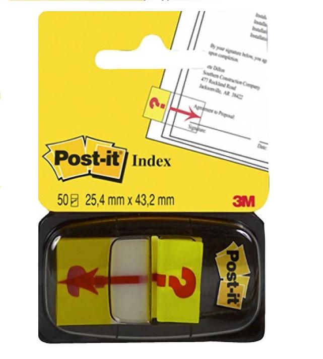 Zakładki indeksujące z nadrukiem znaku zapytania, idealnie nadają się do wskazywania miejsca do podpisu. Ilość karteczek: 50 w rozmiarze 25x43mm, wykonane z folii PP o grubości 140µm, nie zasłaniają tekstu, ponieważ połowa zakładki jest przezroczysta. Można po nich pisać, można je wielokrotnie przyklejać i odklejać nie niszcząc powierzchni. Kolor żółto-czerwony.