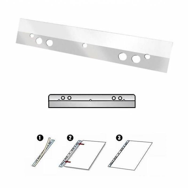 Listwa samoprzylepna o długości 125mm. Umożliwiająca wpiecie pojedynczych kartek, broszur lub katalogów do segregatora bez dziurkowania. Wysoka jakość listwy umożliwia archiwizację obszernych katalogów,uniwersalna perforacja umożliwia wpiecie do każdego segregatora dokumentów formatu A5.