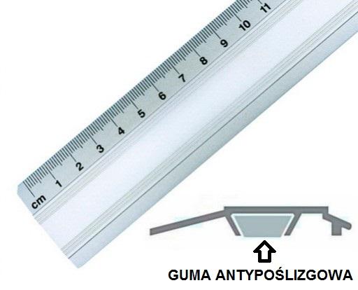 Linijka z anodowanego aluminium, wkładka stalowa wzdłuż całej krawędzi linijki zapobiegająca niszczeniu linijki podczas cięcia nożem. Guma przeciwpoślizgowa pod spodem.