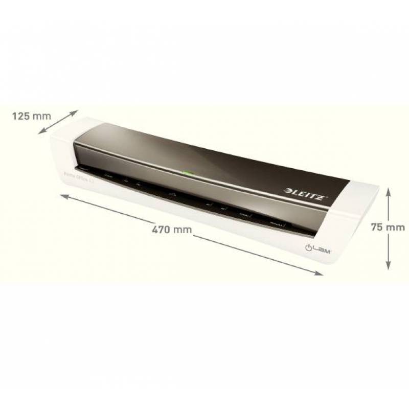 Bezproblemowa, wysokiej jakości laminacja, bez skomplikowanych ustawień. Bardzo krótki czas nagrzewania sprawia, że jest to idealne urządzenie do laminacji niewielkich ilości dokumentów. Stylowe wzornictwo pasujące do każdego nowoczesnego biura - nieużywany zajmuje niewiele miejsca podczas przechowywania. Niskie zużycie energii, wyłącza się automatycznie po 30 min. nieużywania. Odpowiedni dla folii o grubości od 80 do 125 mikronów. Laminacja jednego dokumentu o grubości 80 mikronów zajmuje ok. 45 sekund. Lampka LED i sygnał dźwiękowy informujące o gotowości do pracy. Zawiera gratisowy pakiet folii na start. 2 lata gwarancji, certyfikaty GS, TUV i CE. Rekomendowane jest stosowanie folii Leitz UDT.