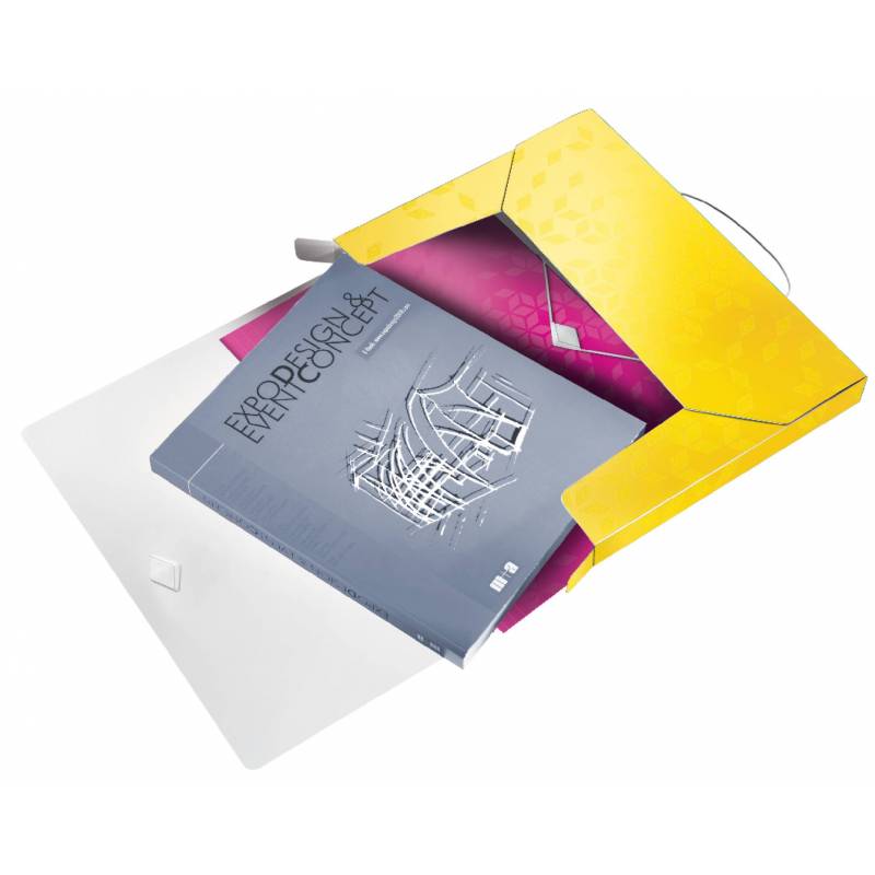 Teczka LEITZ WOW została wykonana z wysokiej jakości polipropylenu. Wyposażona została w specjalną gumkę, która chroni zawartość przed przypadkowym rozsypaniem. Dzięki temu nawet pojedyncze arkusze i luźne kartki mogą być bezpiecznie zamknięte i przenoszone. Szerokość grzbietu 30 mm pozwala na przechowywanie do 250kartek A4 (80 g/m²). Teczkę można Jednostka sprzedaży: 1 sztuka