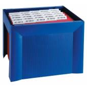 Kartoteka na teczki zawieszane PLUS. Odpowiednia dla wszystkich rodzajów teczek A4. W komplecie z 5 teczkami, etykietami i kieszonkami na etykiety. Zajmuje niewiele miejsca na biurku. Obniżony przó...