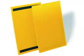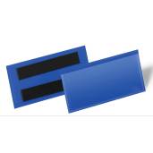 Kieszeń z dwoma paskami magnetycznymi na tylnej ściance. Zastosowanie na metalowych powierzchniach, takich regały magazynowe, perforowane metalowe ścianki i metalowe pojemniki. Niebieska folia tyln...